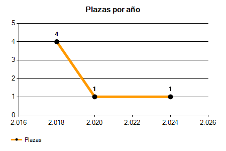 En los siguientes gráficos se puede ver la evolución del número de convocatorias y plazas convocadas para la profesión de Técnico administración especial en Jaén de los últimos años pudiéndose observar una caída del 100,00% desde el año 2018 hasta el 2025 en número de convocatorias y una caída del 100,00% en número de plazas convocadas.