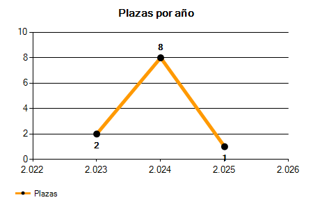 En los siguientes gráficos se puede ver la evolución del número de convocatorias y plazas convocadas para la profesión de Técnico administración especial en Santa Cruz de Tenerife de los últimos años pudiéndose observar una caída del 50,00% desde el año 2023 hasta el 2025 en número de convocatorias y una caída del 50,00% en número de plazas convocadas.