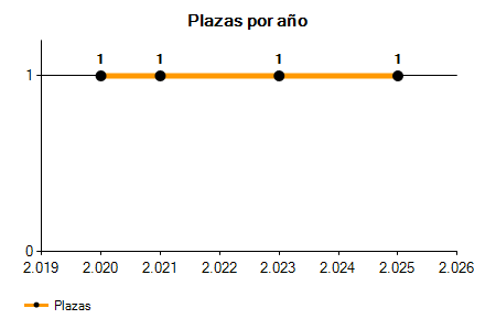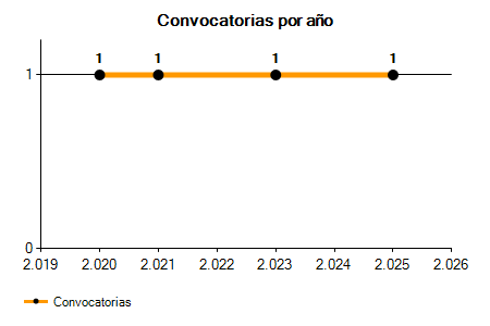 En los siguientes gráficos se puede ver la evolución del número de convocatorias y plazas convocadas para la profesión de Técnico de Deportes en Asturias de los últimos años pudiéndose observar un crecimiento y una caída del 0,00% desde el año 2020 hasta el 2025 en número de convocatorias y un crecimiento y una caída del 0,00% en número de plazas convocadas.