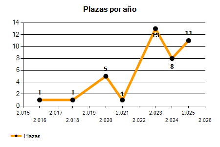 En los siguientes gráficos se puede ver la evolución del número de convocatorias y plazas convocadas para la profesión de Técnico de Deportes en Barcelona de los últimos años pudiéndose observar un crecimiento del 900,00% desde el año 2016 hasta el 2025 en número de convocatorias y un crecimiento del 1.000,00% en número de plazas convocadas.