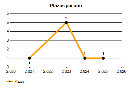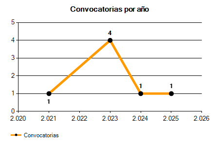 En los siguientes gráficos se puede ver la evolución del número de convocatorias y plazas convocadas para la profesión de Técnico de Deportes en Castellón de la Plana de los últimos años pudiéndose observar un crecimiento y una caída del 0,00% desde el año 2021 hasta el 2025 en número de convocatorias y un crecimiento y una caída del 0,00% en número de plazas convocadas.