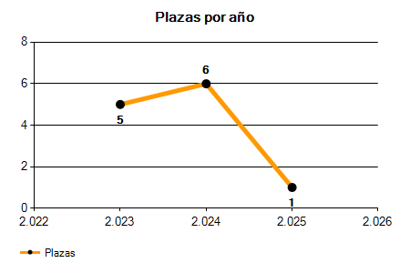 En los siguientes gráficos se puede ver la evolución del número de convocatorias y plazas convocadas para la profesión de Técnico de Empleo en Barcelona de los últimos años pudiéndose observar una caída del 50,00% desde el año 2023 hasta el 2025 en número de convocatorias y una caída del 80,00% en número de plazas convocadas.