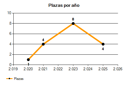 En los siguientes gráficos se puede ver la evolución del número de convocatorias y plazas convocadas para la profesión de Técnico de Euskera en Guipúzcoa de los últimos años pudiéndose observar un crecimiento del 100,00% desde el año 2020 hasta el 2025 en número de convocatorias y un crecimiento del 300,00% en número de plazas convocadas.