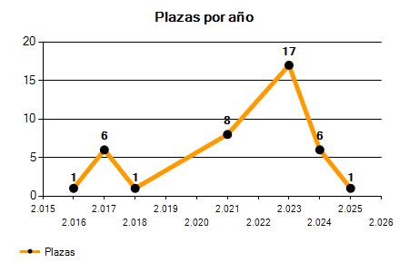 En los siguientes gráficos se puede ver la evolución del número de convocatorias y plazas convocadas para la profesión de Técnico de Gestión en Alicante de los últimos años pudiéndose observar un crecimiento y una caída del 0,00% desde el año 2016 hasta el 2025 en número de convocatorias y un crecimiento y una caída del 0,00% en número de plazas convocadas.
