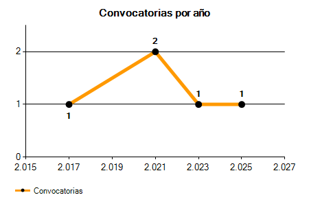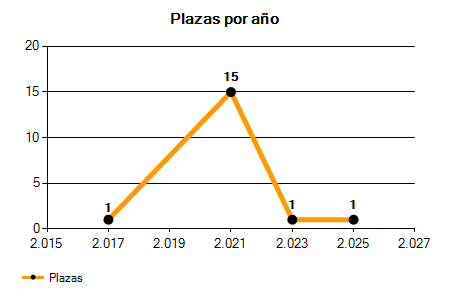 En los siguientes gráficos se puede ver la evolución del número de convocatorias y plazas convocadas para la profesión de Técnico de Promoción Económica en Guipúzcoa de los últimos años pudiéndose observar un crecimiento y una caída del 0,00% desde el año 2017 hasta el 2025 en número de convocatorias y un crecimiento y una caída del 0,00% en número de plazas convocadas.