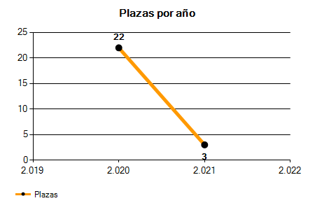 En los siguientes gráficos se puede ver la evolución del número de convocatorias y plazas convocadas para la profesión de Técnico de Promoción Económica en Madrid de los últimos años pudiéndose observar una caída del 100,00% desde el año 2020 hasta el 2025 en número de convocatorias y una caída del 100,00% en número de plazas convocadas.
