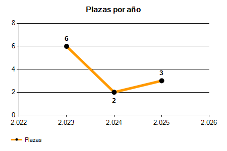 En los siguientes gráficos se puede ver la evolución del número de convocatorias y plazas convocadas para la profesión de Técnico de Urbanismo en Barcelona de los últimos años pudiéndose observar una caída del 50,00% desde el año 2023 hasta el 2025 en número de convocatorias y una caída del 50,00% en número de plazas convocadas.