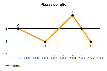 En los siguientes gráficos se puede ver la evolución del número de convocatorias y plazas convocadas para la profesión de Técnico de Urbanismo en Guipúzcoa de los últimos años pudiéndose observar una caída del 50,00% desde el año 2017 hasta el 2025 en número de convocatorias y una caída del 50,00% en número de plazas convocadas.