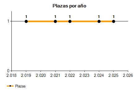En los siguientes gráficos se puede ver la evolución del número de convocatorias y plazas convocadas para la profesión de Técnico de Urbanismo en Lleida de los últimos años pudiéndose observar un crecimiento y una caída del 0,00% desde el año 2019 hasta el 2025 en número de convocatorias y un crecimiento y una caída del 0,00% en número de plazas convocadas.