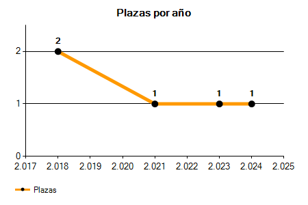 En los siguientes gráficos se puede ver la evolución del número de convocatorias y plazas convocadas para la profesión de Técnico de Urbanismo en Murcia de los últimos años pudiéndose observar una caída del 100,00% desde el año 2018 hasta el 2025 en número de convocatorias y una caída del 100,00% en número de plazas convocadas.