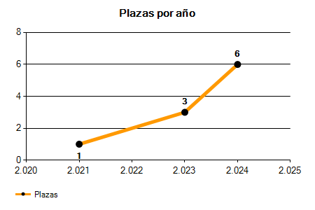En los siguientes gráficos se puede ver la evolución del número de convocatorias y plazas convocadas para la profesión de Técnico de Urbanismo en Tarragona de los últimos años pudiéndose observar una caída del 100,00% desde el año 2021 hasta el 2025 en número de convocatorias y una caída del 100,00% en número de plazas convocadas.