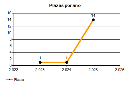 En los siguientes gráficos se puede ver la evolución del número de convocatorias y plazas convocadas para la profesión de Técnico en Atención Sociosanitaria en Balears de los últimos años pudiéndose observar un crecimiento y una caída del 0,00% desde el año 2023 hasta el 2025 en número de convocatorias y un crecimiento del 1.300,00% en número de plazas convocadas.