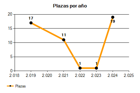 En los siguientes gráficos se puede ver la evolución del número de convocatorias y plazas convocadas para la profesión de Técnico en Emergencias en Madrid de los últimos años pudiéndose observar una caída del 100,00% desde el año 2019 hasta el 2025 en número de convocatorias y una caída del 100,00% en número de plazas convocadas.