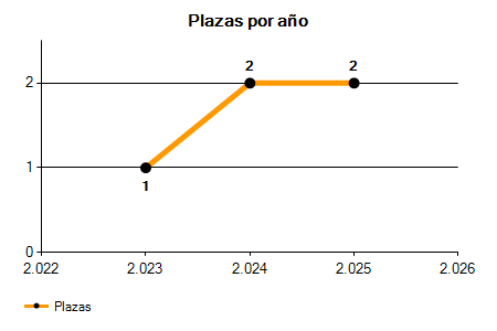En los siguientes gráficos se puede ver la evolución del número de convocatorias y plazas convocadas para la profesión de Técnico gestión función administrativa en Valencia de los últimos años pudiéndose observar una caída del 100,00% desde el año 2023 hasta el 2026 en número de convocatorias y una caída del 100,00% en número de plazas convocadas.