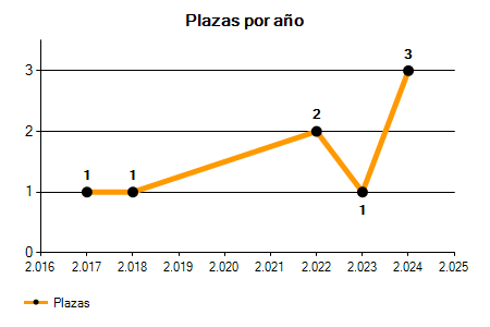 En los siguientes gráficos se puede ver la evolución del número de convocatorias y plazas convocadas para la profesión de Técnico Hacienda en Madrid de los últimos años pudiéndose observar una caída del 100,00% desde el año 2017 hasta el 2025 en número de convocatorias y una caída del 100,00% en número de plazas convocadas.