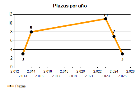 En los siguientes gráficos se puede ver la evolución del número de convocatorias y plazas convocadas para la profesión de Técnico informático en Girona de los últimos años pudiéndose observar un crecimiento del 100,00% desde el año 2013 hasta el 2025 en número de convocatorias y un crecimiento y una caída del 0,00% en número de plazas convocadas.