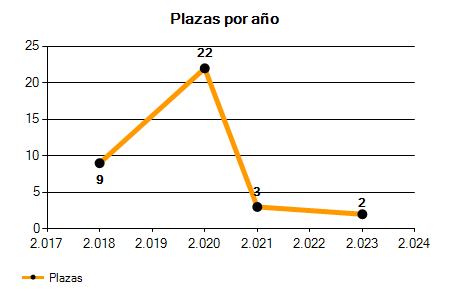 En los siguientes gráficos se puede ver la evolución del número de convocatorias y plazas convocadas para la profesión de Técnico informático en Granada de los últimos años pudiéndose observar una caída del 100,00% desde el año 2018 hasta el 2025 en número de convocatorias y una caída del 100,00% en número de plazas convocadas.