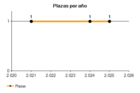 En los siguientes gráficos se puede ver la evolución del número de convocatorias y plazas convocadas para la profesión de Técnico Superior de Prevención de Riesgos Laborales en Coruña,A de los últimos años pudiéndose observar una caída del 100,00% desde el año 2021 hasta el 2026 en número de convocatorias y una caída del 100,00% en número de plazas convocadas.