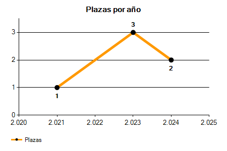 En los siguientes gráficos se puede ver la evolución del número de convocatorias y plazas convocadas para la profesión de Técnico Superior de Proyectos en Barcelona de los últimos años pudiéndose observar una caída del 100,00% desde el año 2021 hasta el 2025 en número de convocatorias y una caída del 100,00% en número de plazas convocadas.