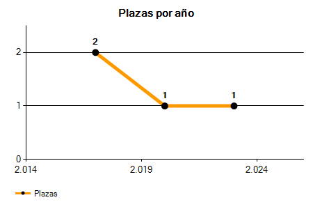 En los siguientes gráficos se puede ver la evolución del número de convocatorias y plazas convocadas para la profesión de Técnico Superior de Proyectos en Pontevedra de los últimos años pudiéndose observar una caída del 100,00% desde el año 2017 hasta el 2025 en número de convocatorias y una caída del 100,00% en número de plazas convocadas.