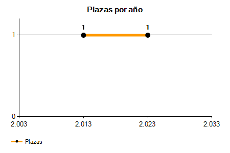 En los siguientes gráficos se puede ver la evolución del número de convocatorias y plazas convocadas para la profesión de Topógrafo en Barcelona de los últimos años pudiéndose observar una caída del 100,00% desde el año 2013 hasta el 2025 en número de convocatorias y una caída del 100,00% en número de plazas convocadas.
