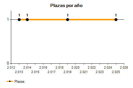 En los siguientes gráficos se puede ver la evolución del número de convocatorias y plazas convocadas para la profesión de Topógrafo en Tarragona de los últimos años pudiéndose observar un crecimiento y una caída del 0,00% desde el año 2013 hasta el 2025 en número de convocatorias y un crecimiento y una caída del 0,00% en número de plazas convocadas.